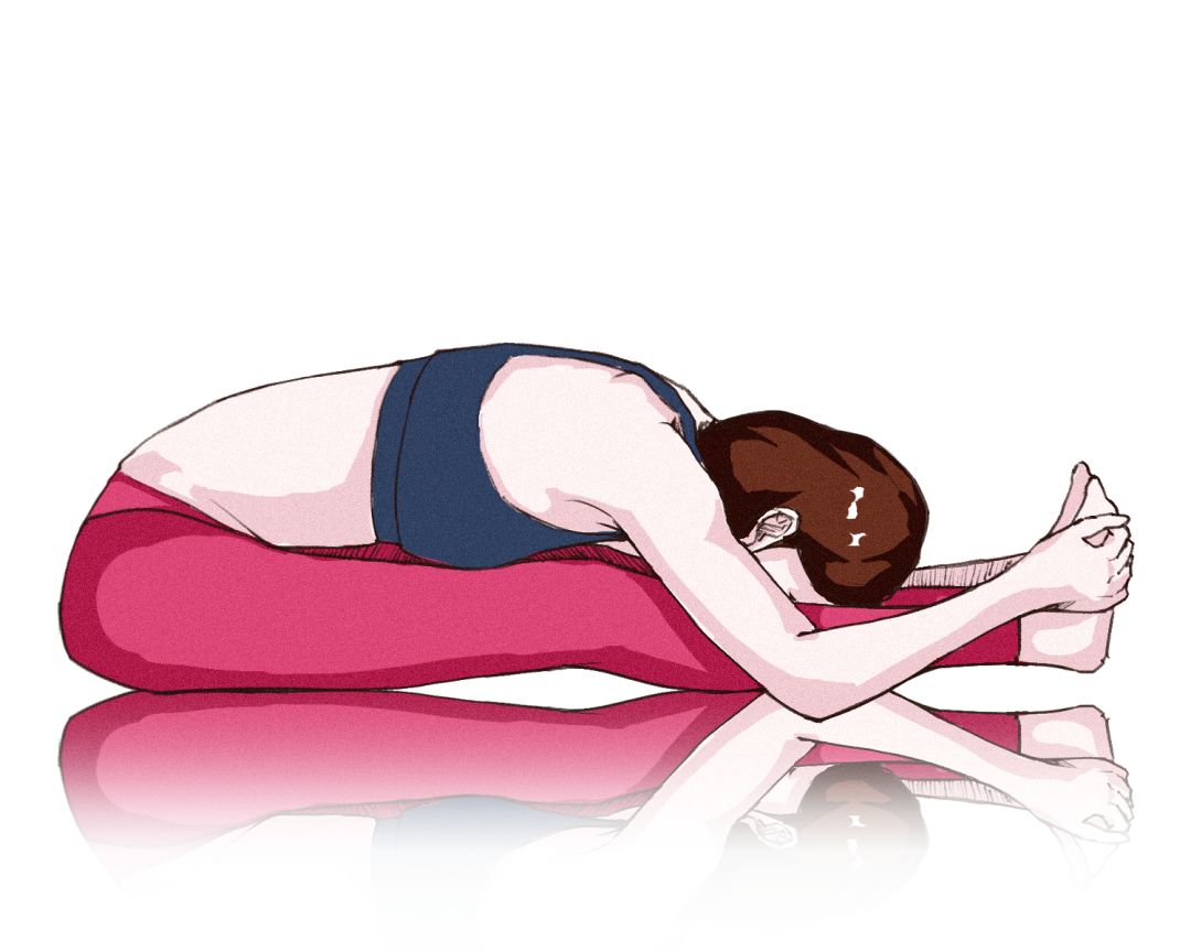 3.一边慢慢呼气,一边渐渐地把双腿和躯干还原,放松全身。重复此练习3次。