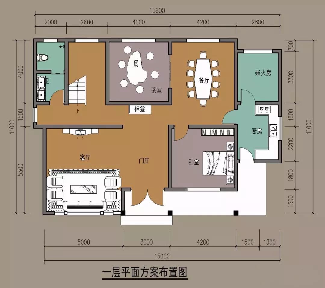 建筑面积:265㎡ 主体结构:装配式钢结构 功能布局: 一层设有:门厅、客厅、神龛、茶室、餐厅、柴火房、厨房、卧室、卫生间; 二层设有:3间卧室、2间卫生间、书房、阳台。
