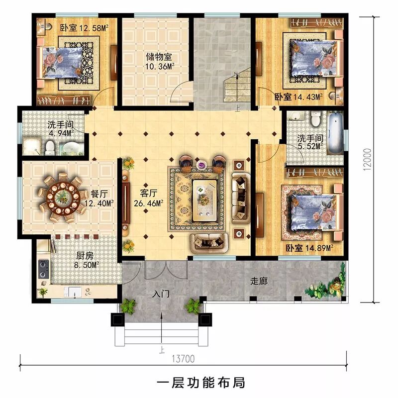 内部功能设计齐全,充分满足大家庭的居住需求。