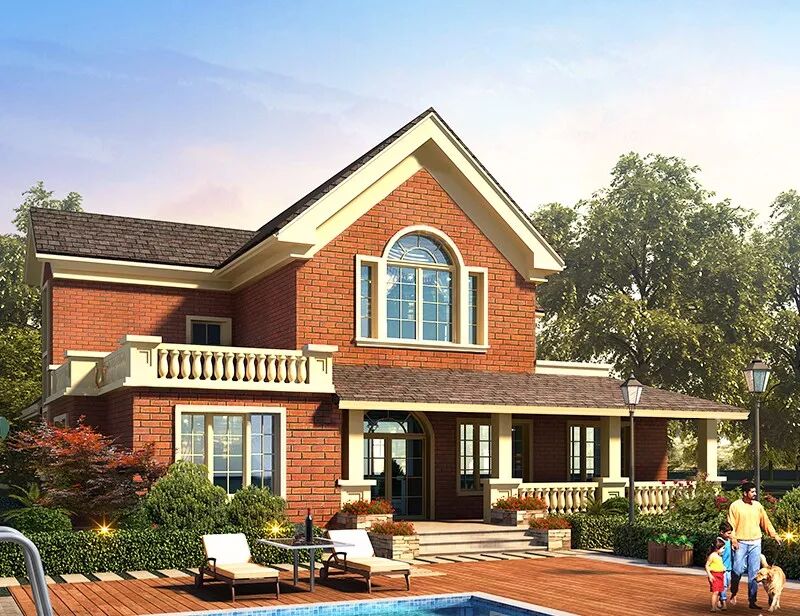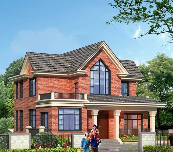 色彩鲜艳的砖红色外墙、白窗、灰瓦显得优雅庄重。英式风格别墅,给人一种沉稳、典雅的感觉