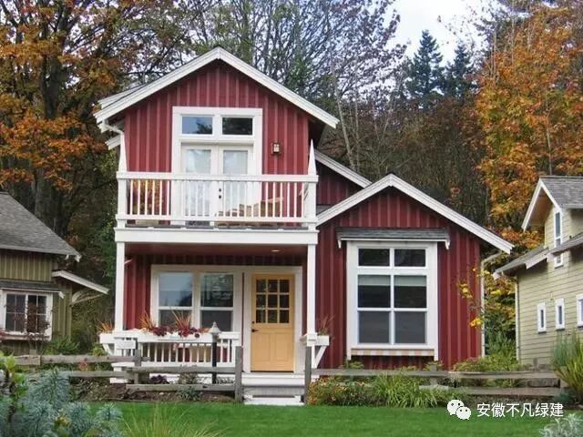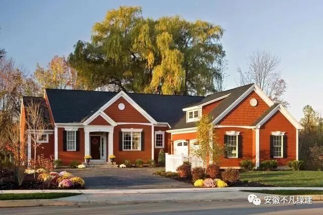 红色的外观,让一层的房子也非常上档次,和蓝天白云绿草地完美融合。