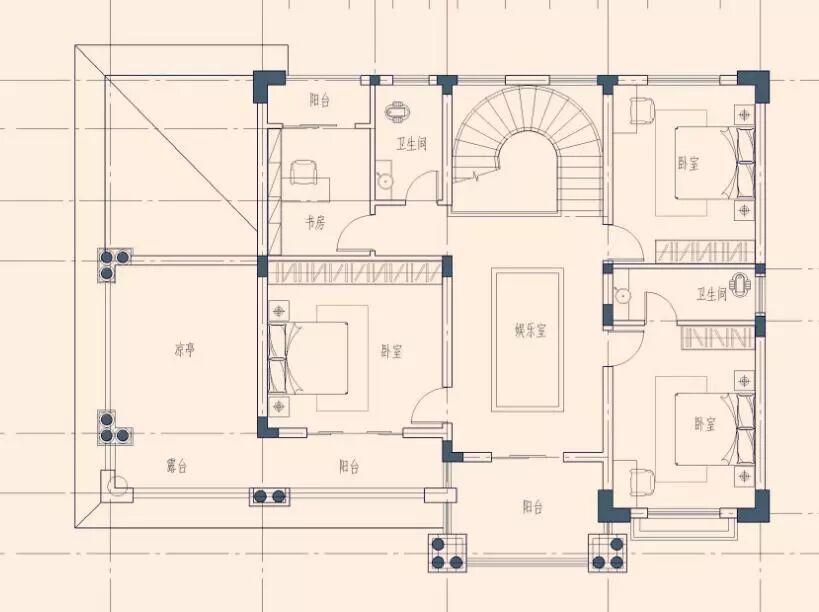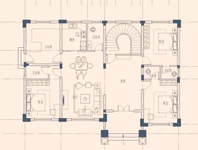 二层农村豪宅,欧式构件把整个别墅外观装饰的非常精美,在农村建得起这样一套豪宅的,在农村一定是位人物。这款户型面宽16.2米,进深10.8米,占地面积171.9平方米。带堂屋和旋转楼梯,土灶和娱乐室齐全。