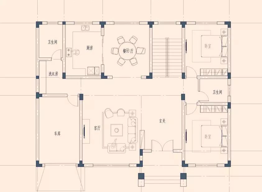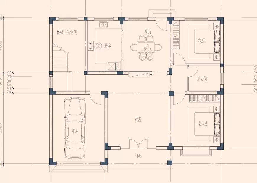 简单精致二层农村小别墅,带车库和屋顶露台,舒适大气又实用。开间13.5米,进深11.5米,占地面积145.6平方米,带有堂屋,总设计有6间房。