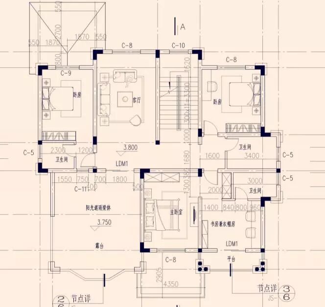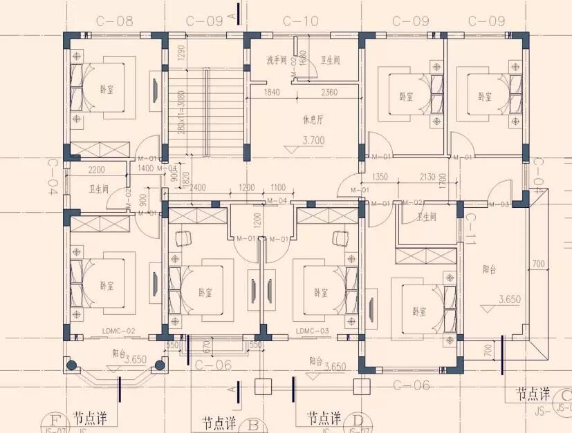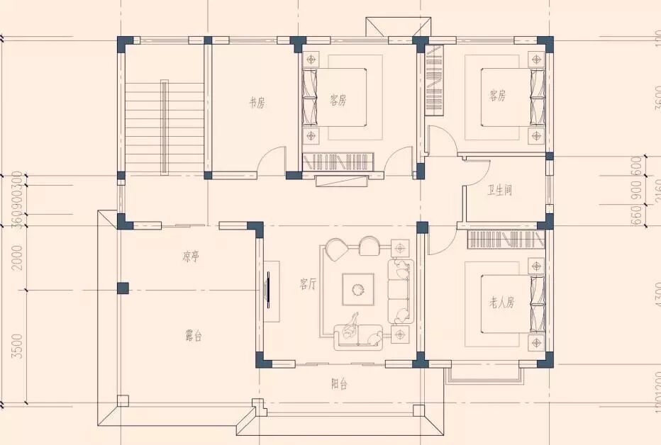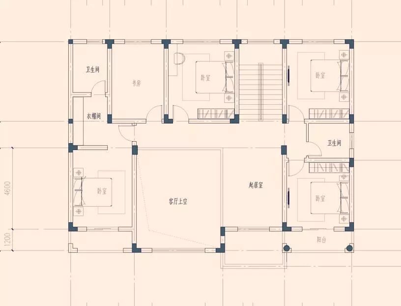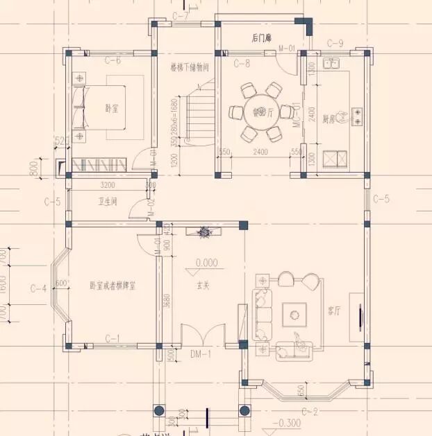 面积比较大的农村别墅,开间16.8米,进深12.3米,占地面积191.8平方米,卧室非常的多,一层有4间卧室,二层有7间卧室,可以用来出租和自住。