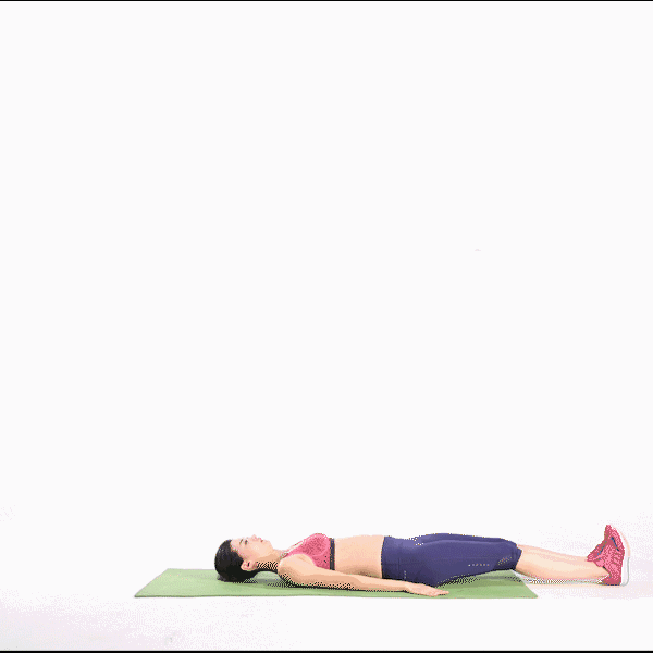TIPS :腰背要贴于瑜伽垫上,颈部不要抬起。