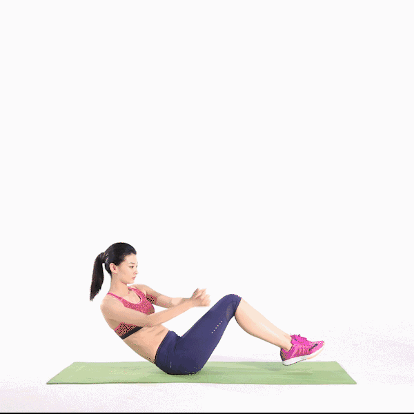 TIPS :肋骨下沉,腰背贴于瑜伽垫,不要弓腰弓背,颈部不要抬起。