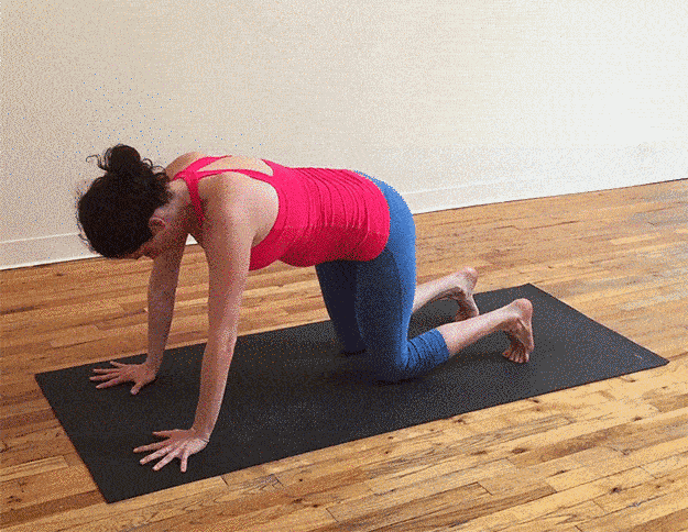 练习下犬式时,距离很重要,合适的距离,才能更好地找到身体延展的感觉。