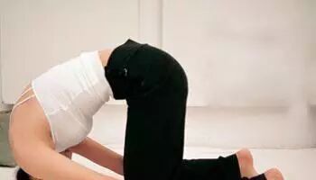 跪立在垫子上,双膝并拢,臀部后移,坐在脚后跟上,双手背在双脚的两侧贴地,伸展,身体前倾,额头点地,吸气,臀部离开脚后跟,向上顶送。