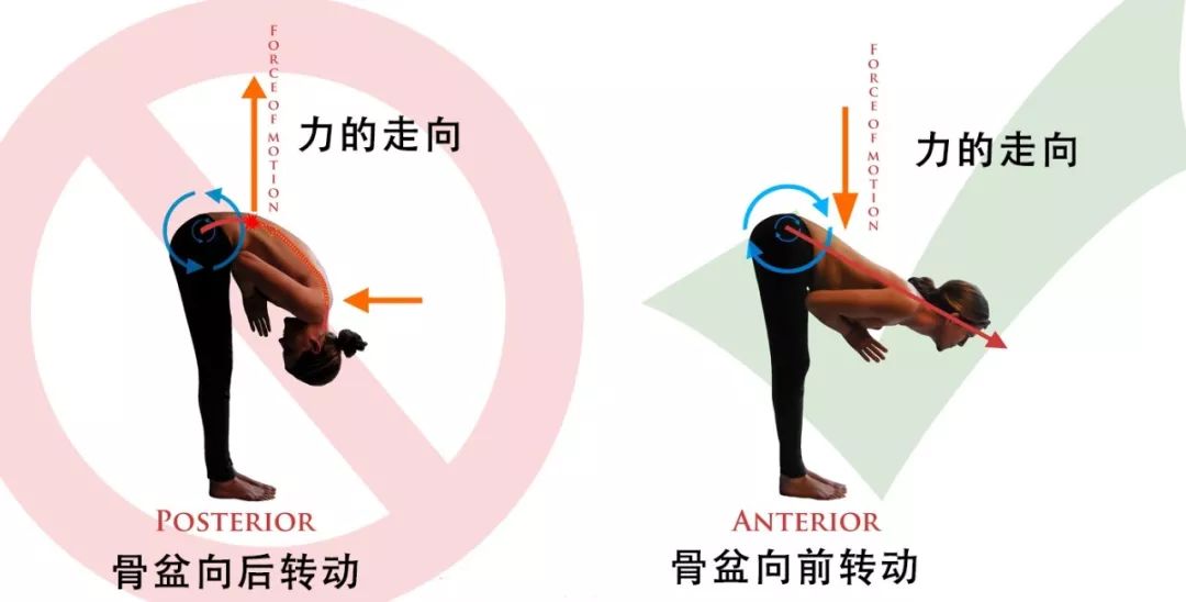 那么,在瑜伽当中,用的比较多的前后转动,到底是怎么转呢?首先,在转动骨盆之前,我们要弄清楚,什么是向前转动,什么是向后转动?