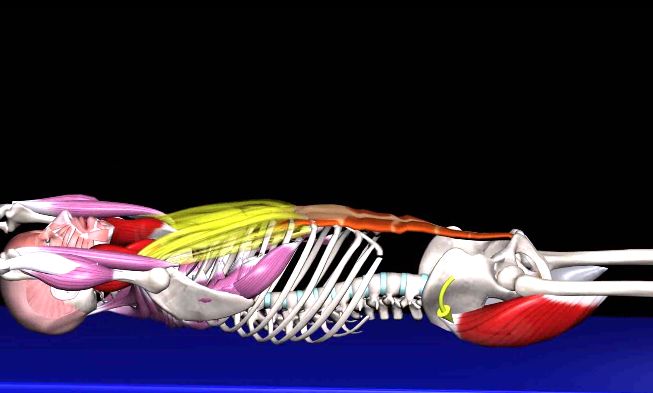 上图给大家展示的是人体在站立、仰卧、俯卧位,骨盆向后转动的图片,小箭头所指就是骨盆转动的方向,大家可以看到我们的髂骨向后转,同时耻骨向前向上,如果你能够理解这个的话,那么与向后转动相反的就是向前转动了。