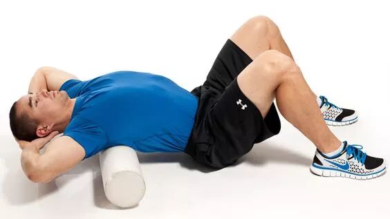 放松上背部,如果采用徒手按摩一定要在专业的康复师或者理疗老师指导下操作。也可以采用泡沫轴来自我放松,仰卧上背部在泡沫轴上,屈双膝,双手抱住头部后侧,前后滚动,直到放松上背部肌肉以及筋膜组织。