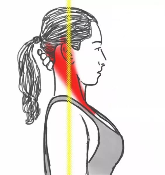 靠墙山式站立,延展脖子后侧,可以用食指辅助推下巴向后,头靠墙,保持整个背部与头部紧贴墙,保持5-8分钟,如果有空的话,也可以多保持一会儿。