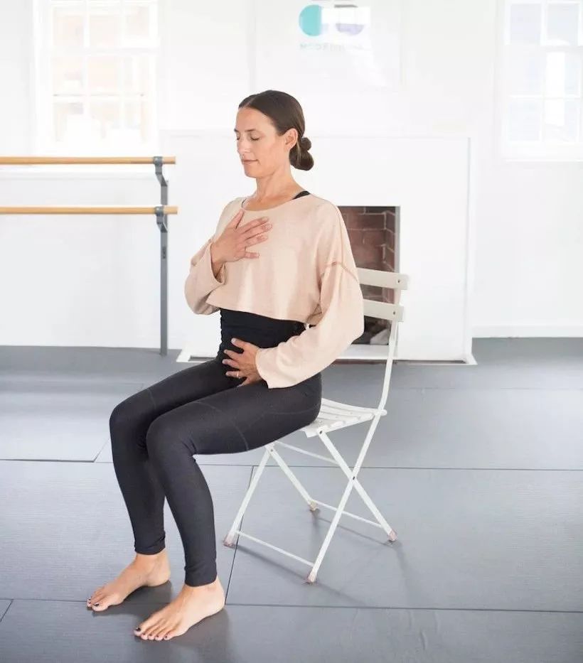 一只手放在胸部,一只手放在腹部