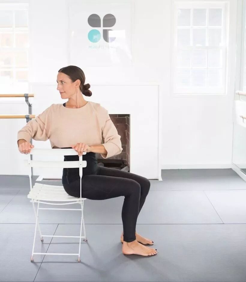 保持双腿平行,臀部坐实椅面