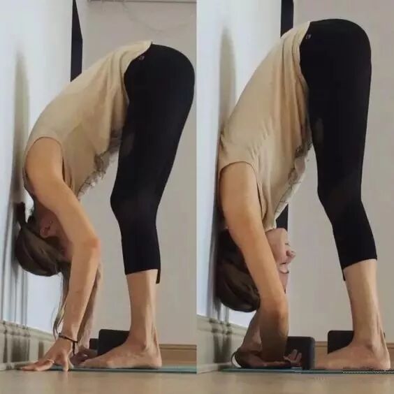 同理,站立前屈,坐立前屈,双角式,加强侧伸展等从髋部折叠的动作,注意不要从腰椎开始折叠代偿,练瑜伽,正位很重要!这样你的练习会少走弯路。