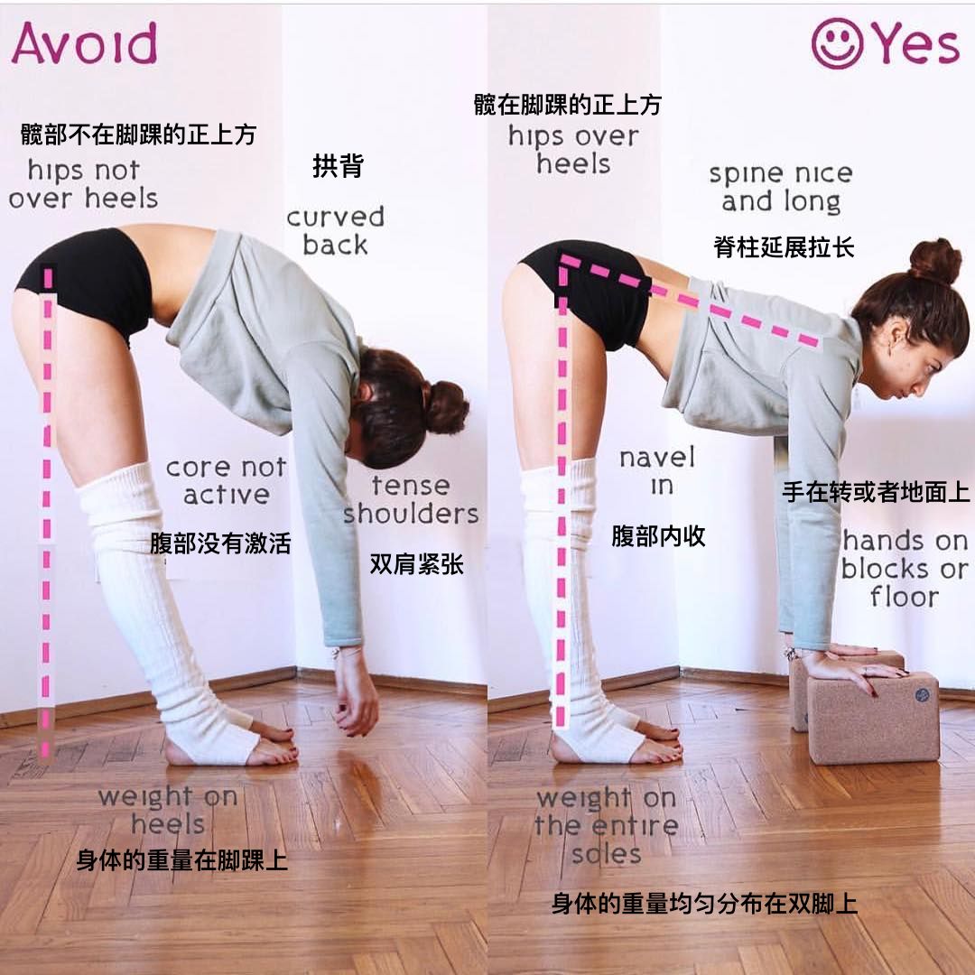 前屈体式找到小腿,大腿后侧,臀部和下背部的延展,学会转动骨盆,才能做好前屈。