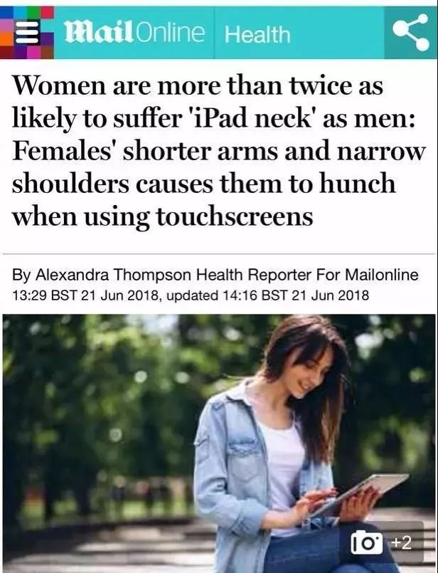 美国内华达大学的研究人员选取412名习惯性使用平板电脑的大学生进行调查分析。他们发现,相对于男性而言,女性肌肉力量较弱、手臂更短、肩膀更窄。参试女性较常在无背部支撑情况下玩电子设备;男性使用时则更习惯躺着或靠着。