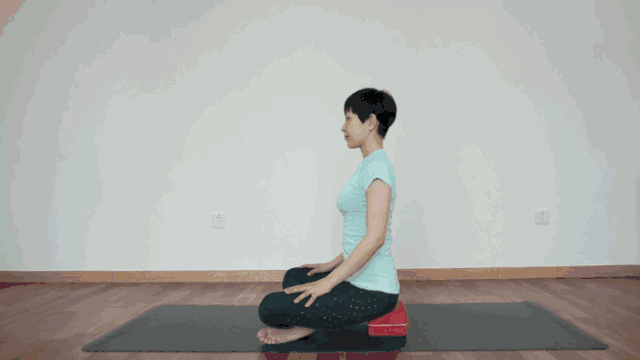 3、保持5-10个呼吸,然后从脊椎开始慢慢一节一节往下落,直到臀部落地。