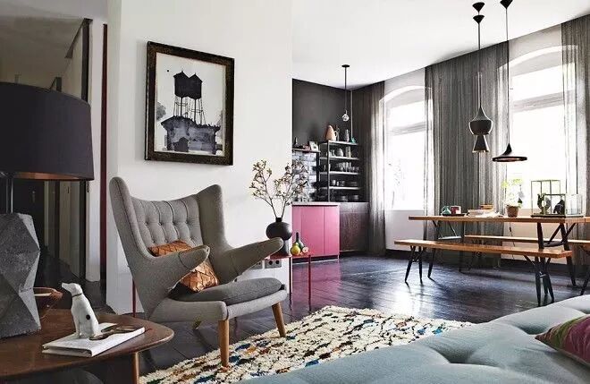 而深色地板,因为颜色比较深重而且占据面积比较大,跟浅色家具相对容易搭配。如果跟深色家具搭配的时候要格外注意,避免整体太过昏暗的感觉。可以适当用明亮的色彩点缀其间。