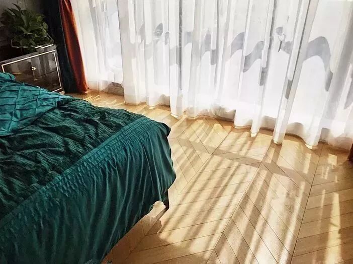 田字形铺法就是将木板拼成一块正方形,最后呈现出田字的效果。这种铺法可以用欧派的多层和实木小板实现,最大的问题在于铺装较为繁琐,相对于的价格也会更高。当然效果也更好。