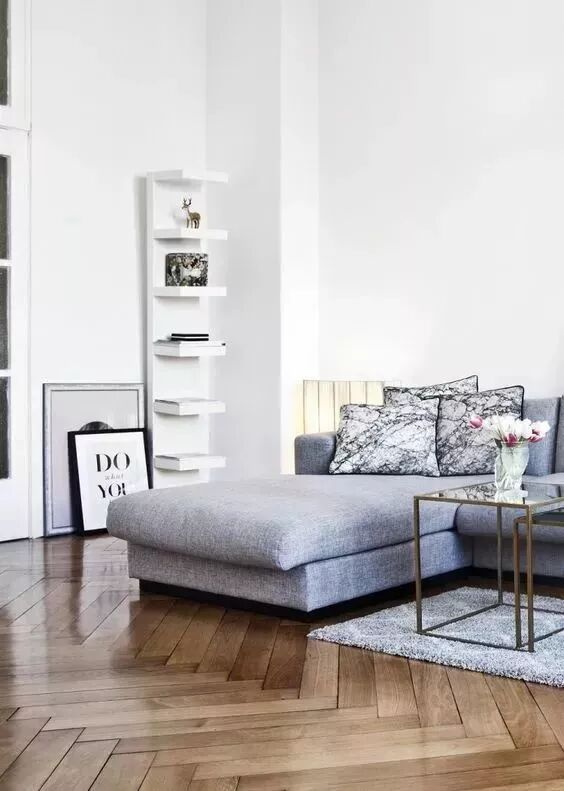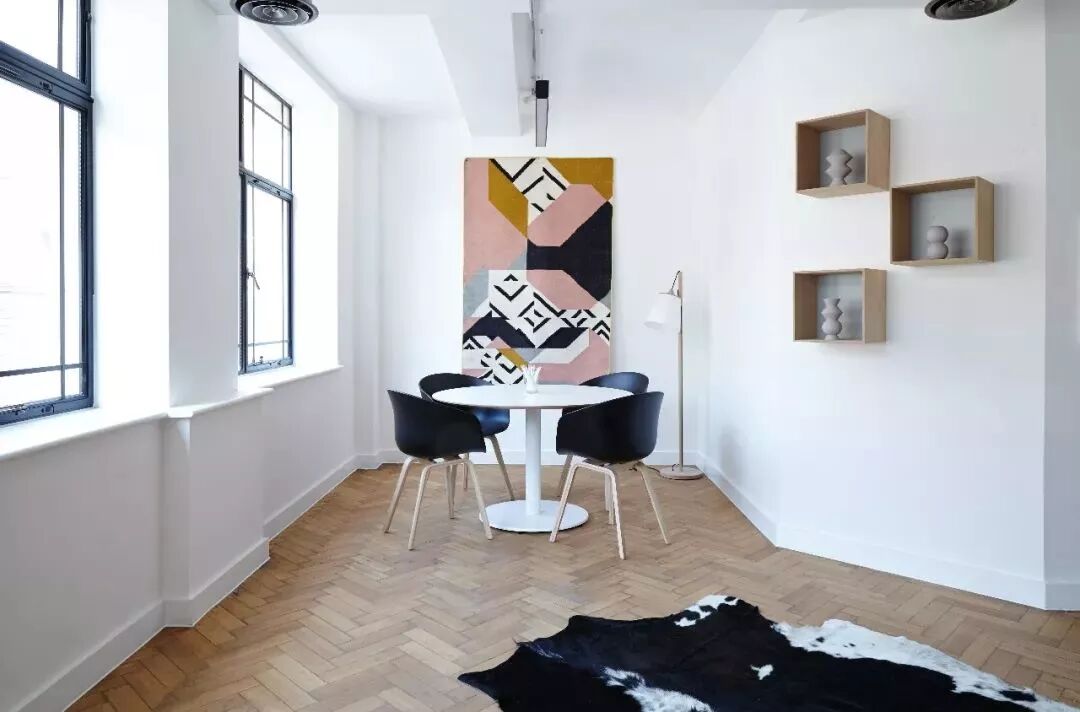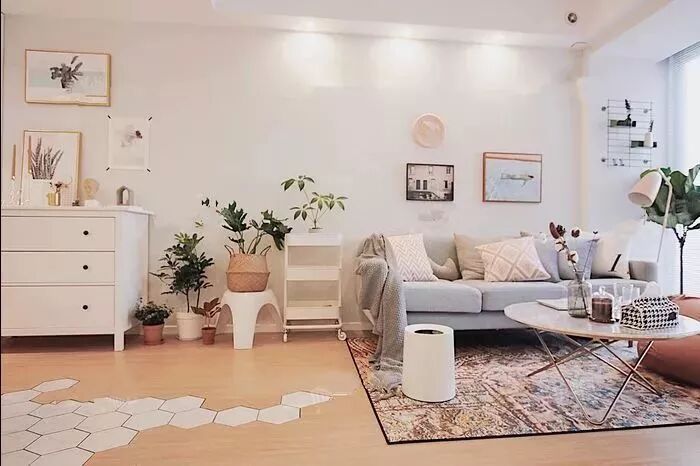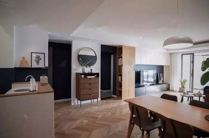 这种铺设方式整体上显得比较整齐,不过有点死板。比较好的做法是选用“有色差”的木地板进行混搭,打破传统铺法+一毛一样木板带来的沉闷感,让整体显得错落有致。