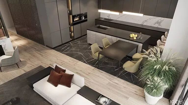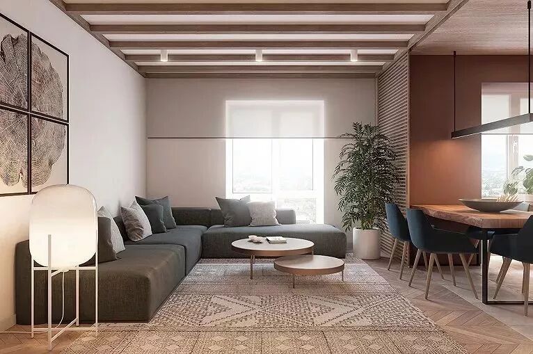 纯粹的木地板,运用于顶部,打破了原有的界限,以一种从容优雅的姿态,抒写家的惊艳感与格调!