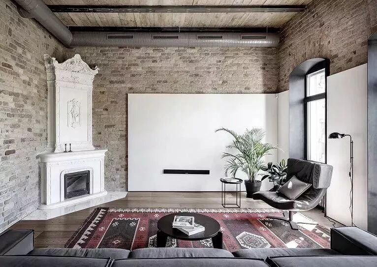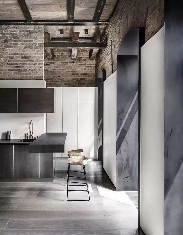木色吊顶与灰砖的衔接