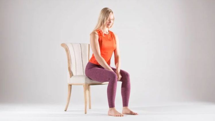 屈右膝靠近腹部,双手握住右小腿的前侧