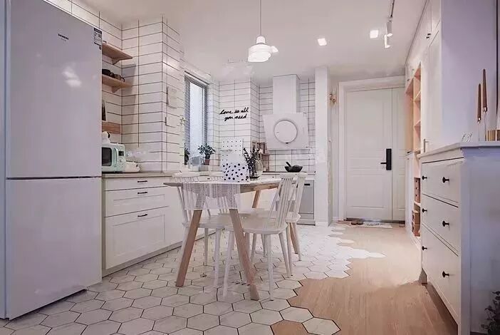 简单来说就是将地板与瓷砖、水泥相混搭。铺贴的时候需要注意交接处的收口问题以及设计时要考虑到不要出现高度差,不然铺得美丽,但经常在上面摔跤可就不怎么美丽了。