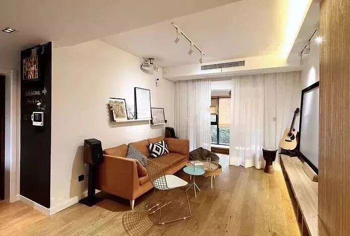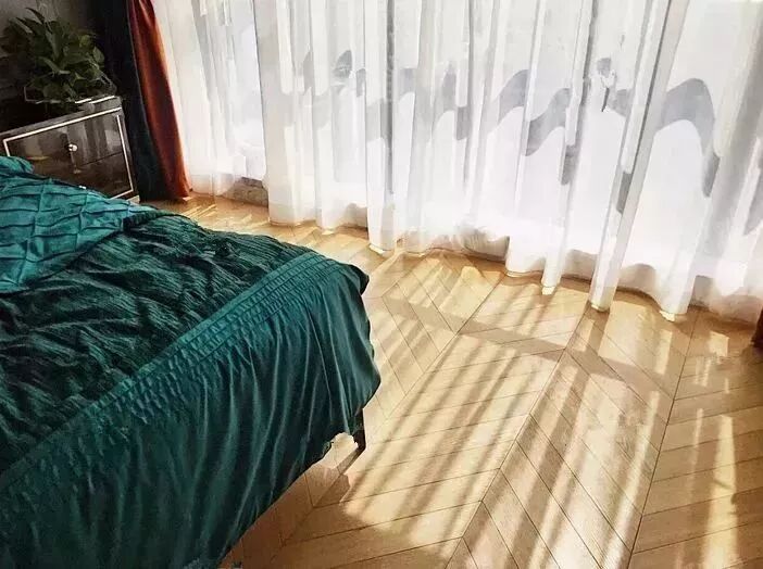这种铺设方式整体上显得比较整齐,不过有点死板。比较好的做法是选用“有色差”的木地板进行混搭,打破传统铺法+一模一样的木板带来的沉闷感,让整体显得错落有致。