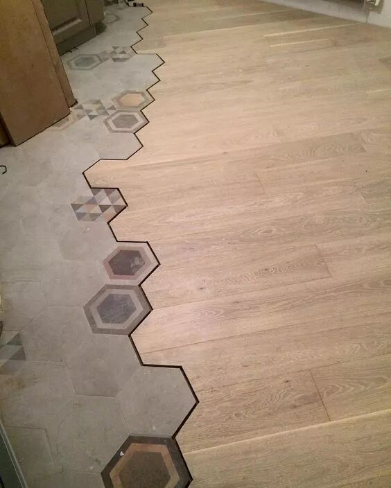 木地板和瓷砖拼接,想要顺利修成正果,技术操作很重要。跨种族融合的背后,技术才是王道。