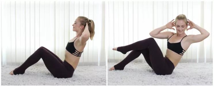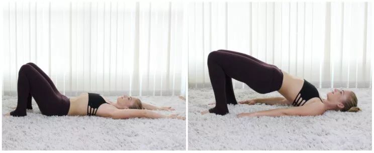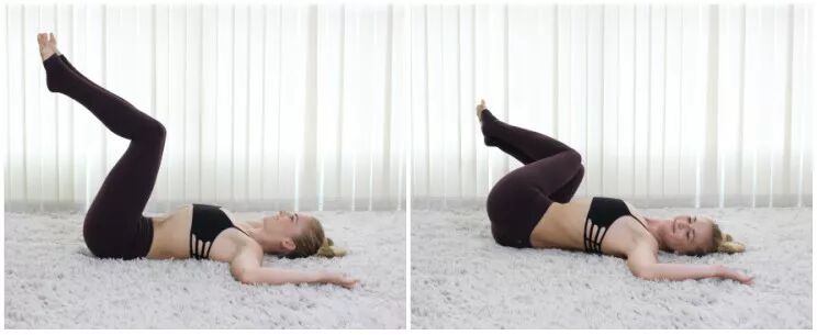 呼气收腹,依次落下背部、臀部