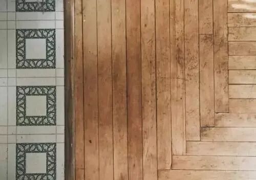 将地板与瓷砖、水泥进行混搭。比较新奇,如果喜欢又有钱也可以试试。