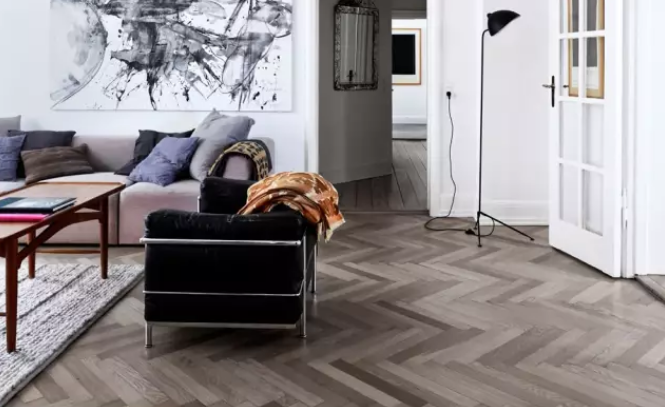 将木板按照“人”字一块一块拼接起来。这种铺法可以从视觉上拉伸空间。常见的拼贴方法有三种:直平人字形、单一人字形与双人字形。