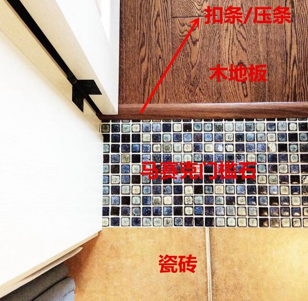 情况一:木地板与过门石之间有缝隙时,用压条收边;