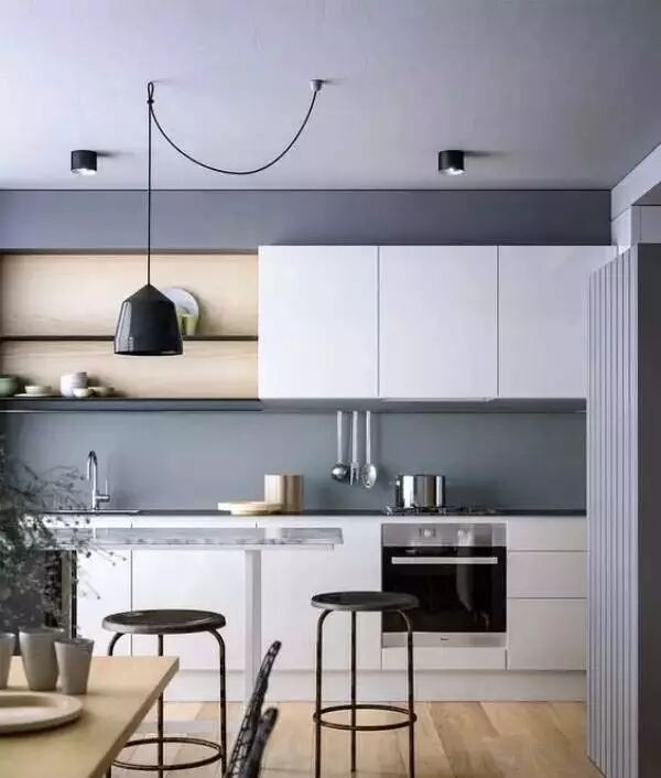 厨房铺地板后,无论是和现代风格还是北欧风日式风格都很搭。木质很容易传达出温暖细腻的感受,用在厨房,会让人在使用时多了几分小心和温柔。