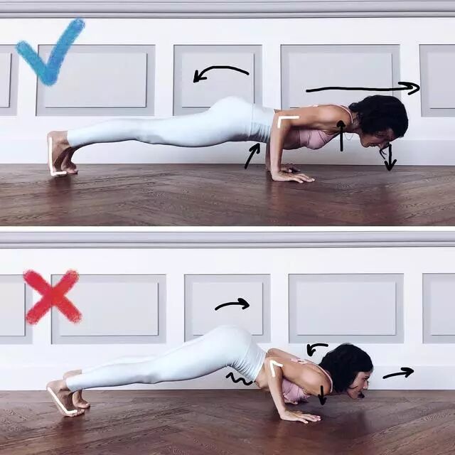 练习者从俯卧姿势开始,屈肘,手掌贴地,双腿打开与胯同宽,脚趾点地,腹部内收,臀部往上抬,使得身体与地面平行。