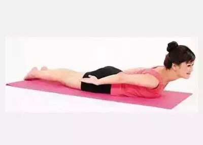 step1 先伏于地上,面向地板,再抬起头,双臂放于臀部旁边,掌心向天;