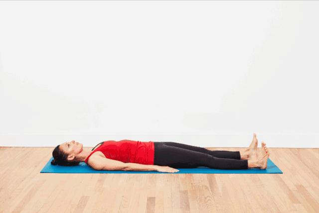 仰卧,屈双膝,将右脚踝放在左大腿上