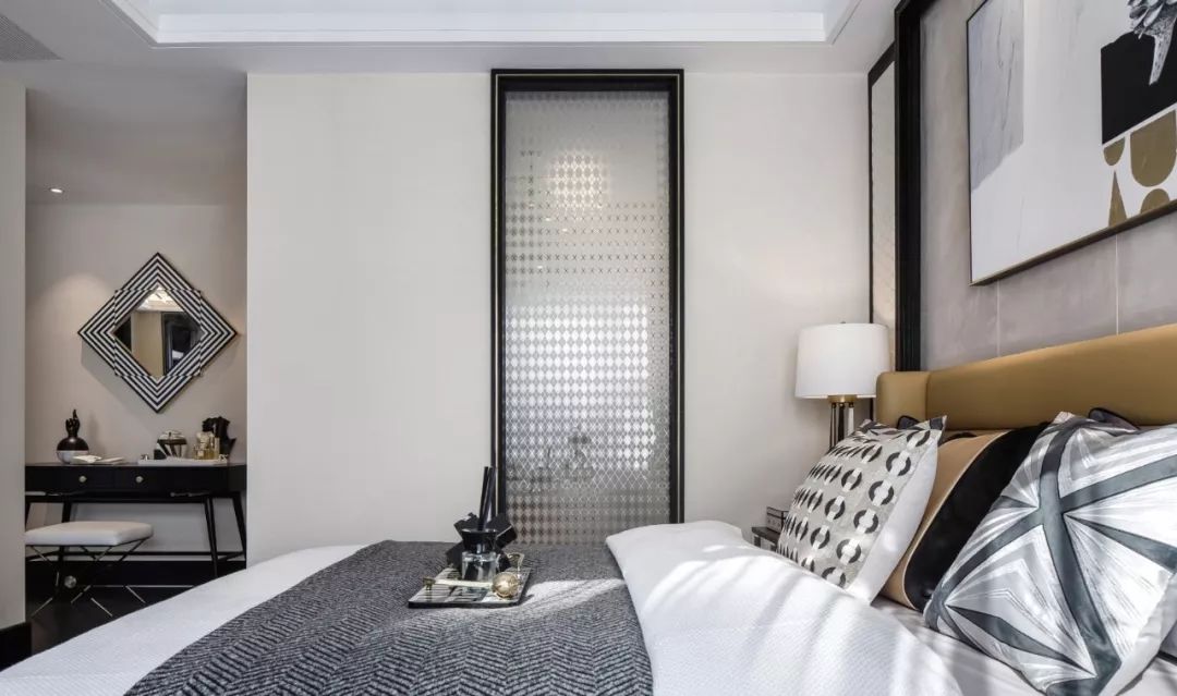 把门隐藏在家具中间,既可以节省空间,又能增强空间视觉效果,简约又整洁。需要注意的是,这种隐形门本身属于非标准式的做法,要根据不同的户型进行单独设计,而且没有专门的厂家定制,所以要这种方式的施工比较复杂。