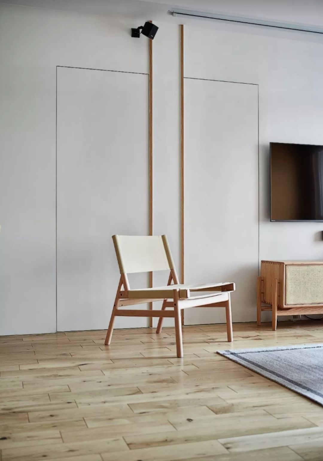 让门隐形的最好方法就是让门与墙融为一体,关键点在于不能有门套和门板的材质和墙面完全一样。这样的“隐形门”,不仅最简单、造价上面也是最便宜的,能够保证和墙面有一定的视觉统一感。
