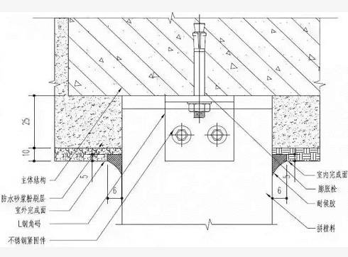 拼樘料应设计加长并对端口封堵后,与结构有效固定;