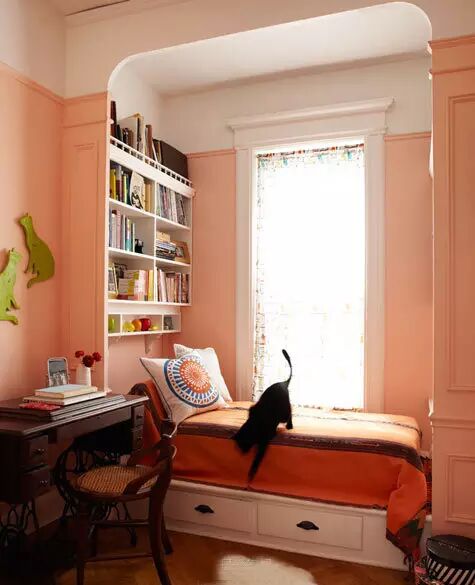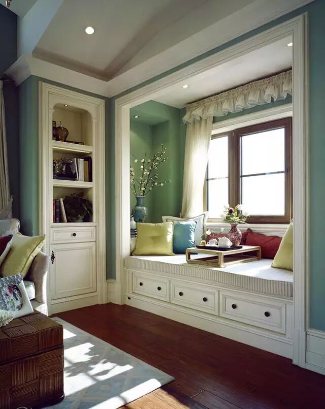 把飘窗的底部砸开,改成抽屉柜的款式,整个飘窗有收纳,又足够好看。