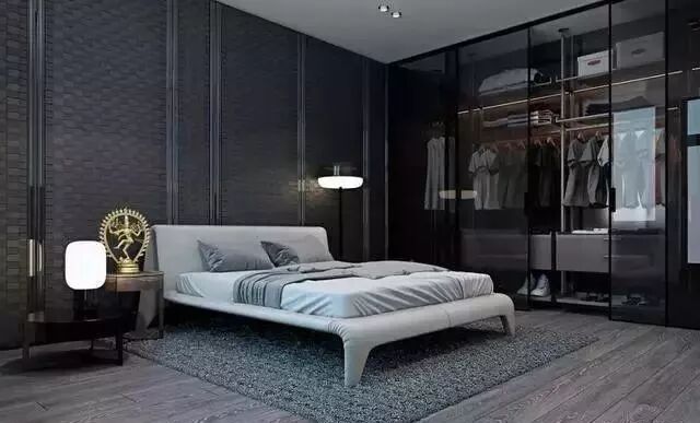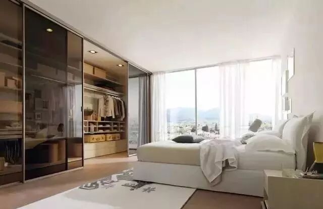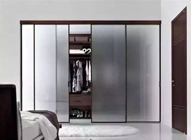 有色玻璃移门区别于透明,主要是为了增加衣柜的私密性,让衣柜的凌乱不至于过度暴露。