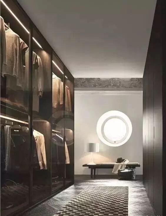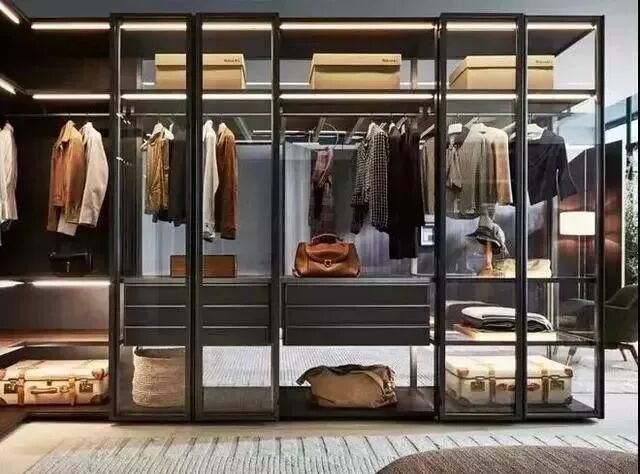 玻璃衣橱将密闭的空间打通,令所有衣物都明朗地呈现在眼前。