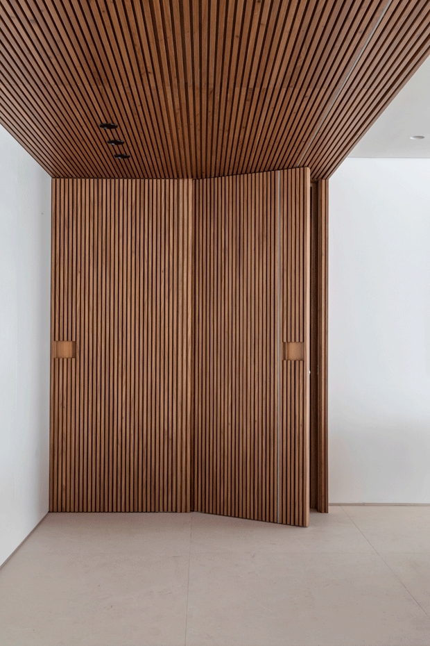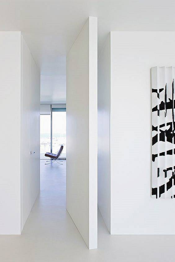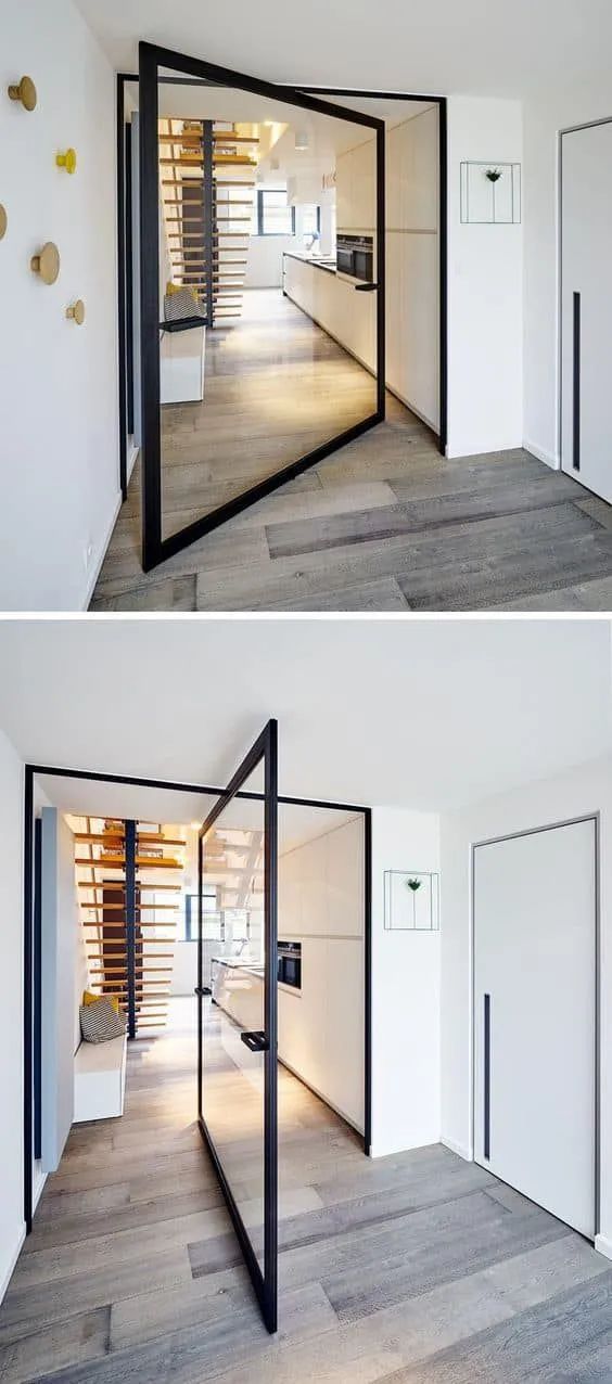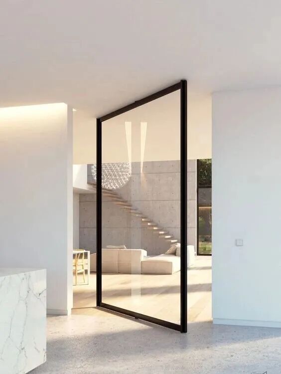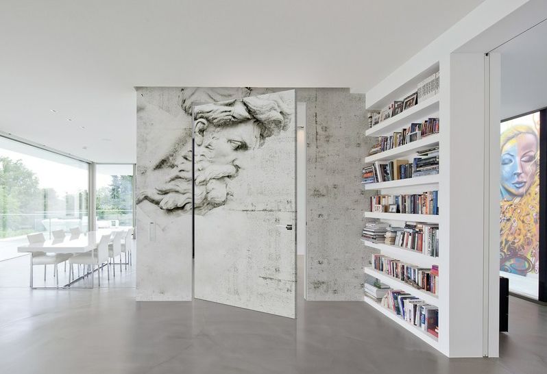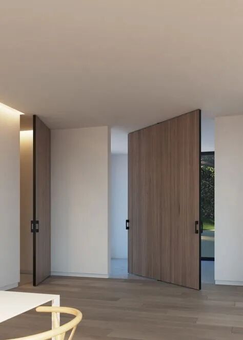 旋转门常见于大户型中,更多为营造特定的空间设计感而存在。在大户型套间的结构中,大门、各种分割区间都可以使用隐形门,兼顾门、隔断塑性等各项功能。
