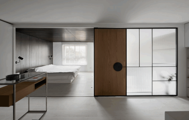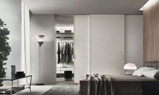 平开式隐形门是家居空间使用率最高的类型。它一般将合页装于门的正面,向内或向外开启,适用于卧室、书房、储藏室等各种功能空间。