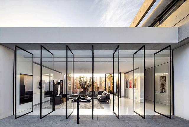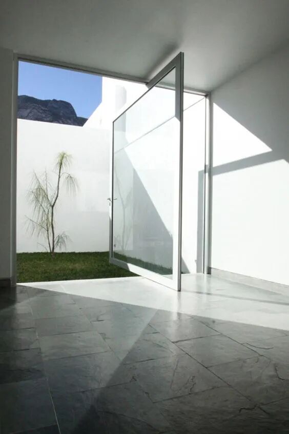 中轴旋转门的优点是可根据门框上下安装的中心轴,将门朝任意方向旋转,灵活性强,若将中轴门拨转到垂直于天花板的状态,远看就像一条水平线,两边都可以随意进出。