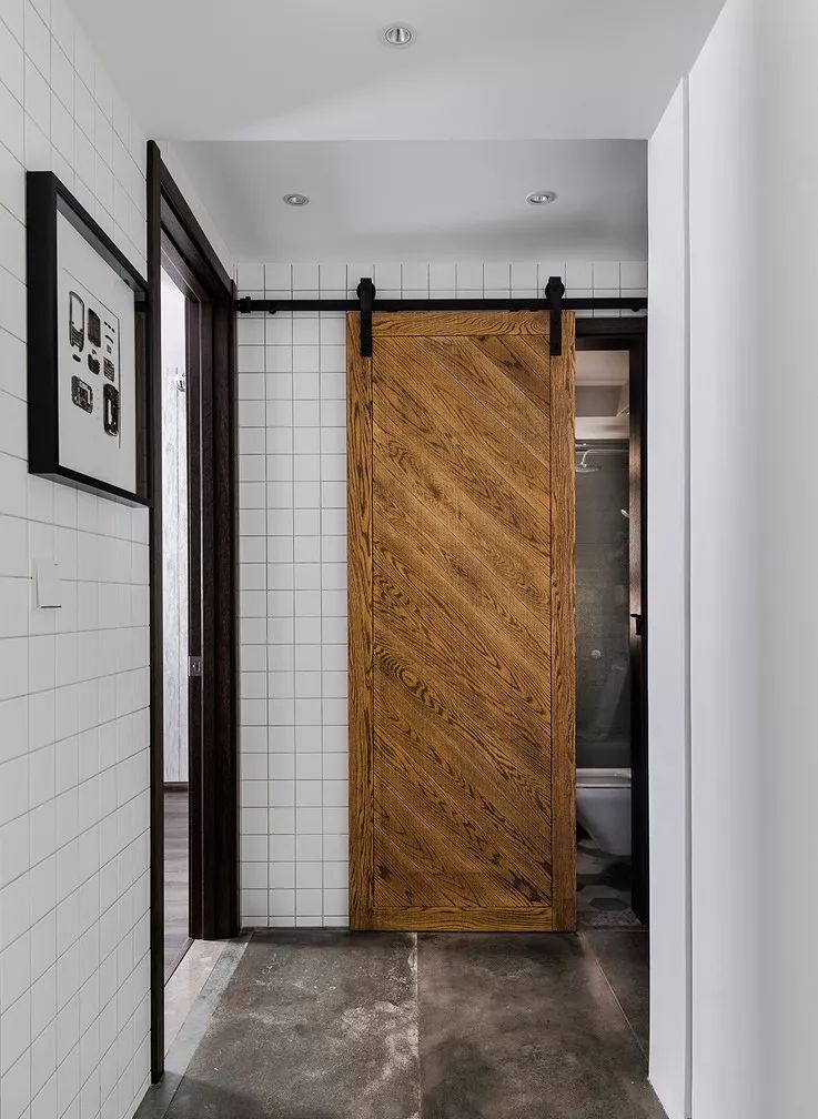谷仓门,英文是Barn door。原本是国外农场的仓库门,后来被用到了室内。它其实也算是移门的一种,属于平贴式吊轨推拉门,轨道外露,安装简单,只需一套五金件和门板进行组合即可,门板可以在定制,手巧的甚至可以DIY,可以说是颜值功能双双在线。