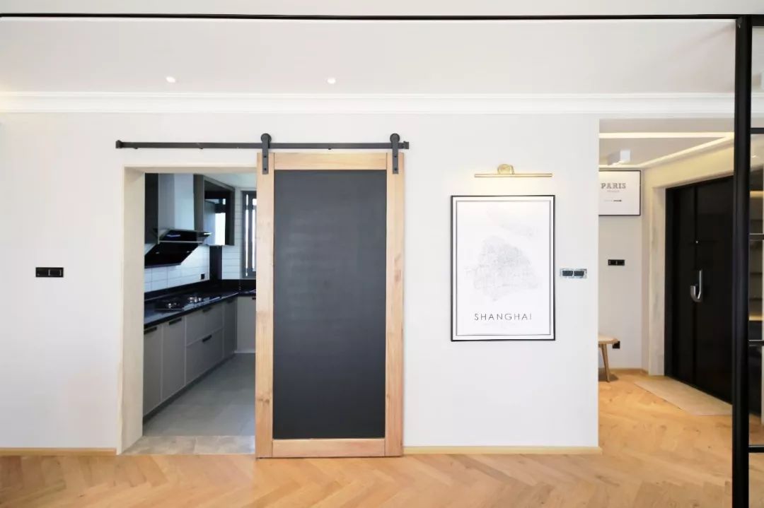 由于谷仓门是吊轨门,在安装的时候要和墙面留出1cm以上的缝隙,所以适合非密闭性,或对隔音性、安全性要求不那么高的场所,比如说厨房、储藏室、洗衣房、衣帽间等空间。
